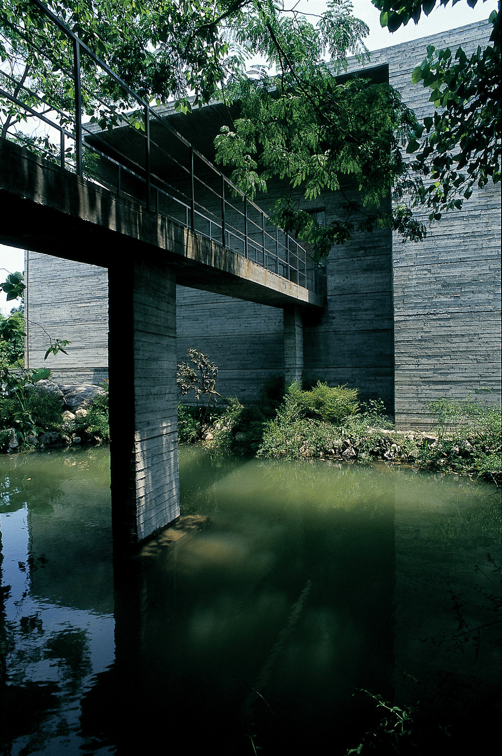 This is exemplified in a relatively early project, the Luyeyuan Stone Sculpture Museum in Chengdu. Here, Liu talked about the technical limitations of local builders, and how the design process became one of constant recalibration according to what they could or couldn’t do. The site was next to a river, so part of the project involved bringing submerged material – rocks and pebbles – to the surface and situating the building amid the mature bamboo trees on the riverbank. The result has calmness and solemnity, yet an almost Brutalist sculptural power, with concealed ceiling lights bringing something of the outside ambience to the interior.