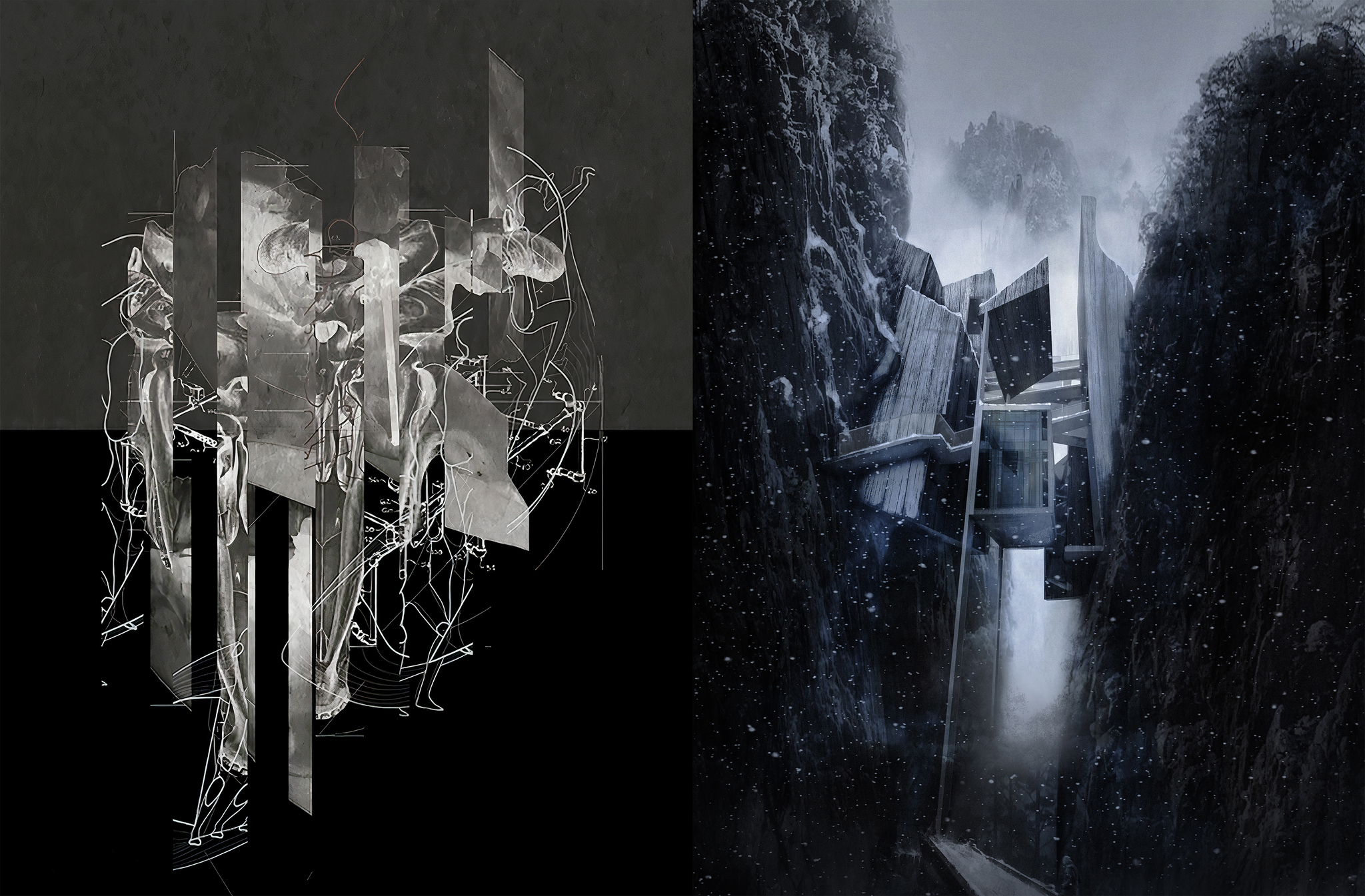 This project envisions a resilient, inhabitable landscape in Bhutan that addresses climate-induced water crises by securing water, food, energy, and cultural resources while protecting downstream ecosystems, depicted through floating villages and a weaving promenade.